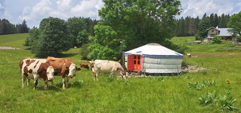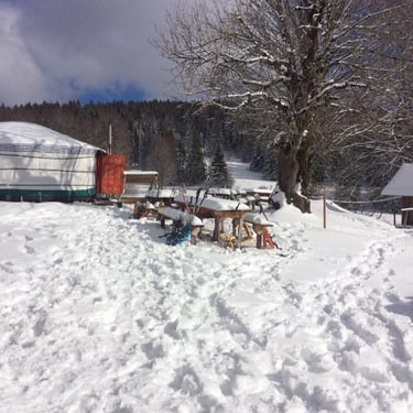 Veuillez noter qu'il n'y a pas d'eau courante ni d'électricité sur le site, ce qui signifie qu'il n'y a pas de douche ni d'électricité dans les logements. L’électricité est disponible sur demande et en petite quantité au chalet. La ferme n’est ni reliée en eau courante (cuve à eau de pluie) ni en électricité (panneaux photovoltaïque). Il nous faut utiliser ces ressources de manière responsable.